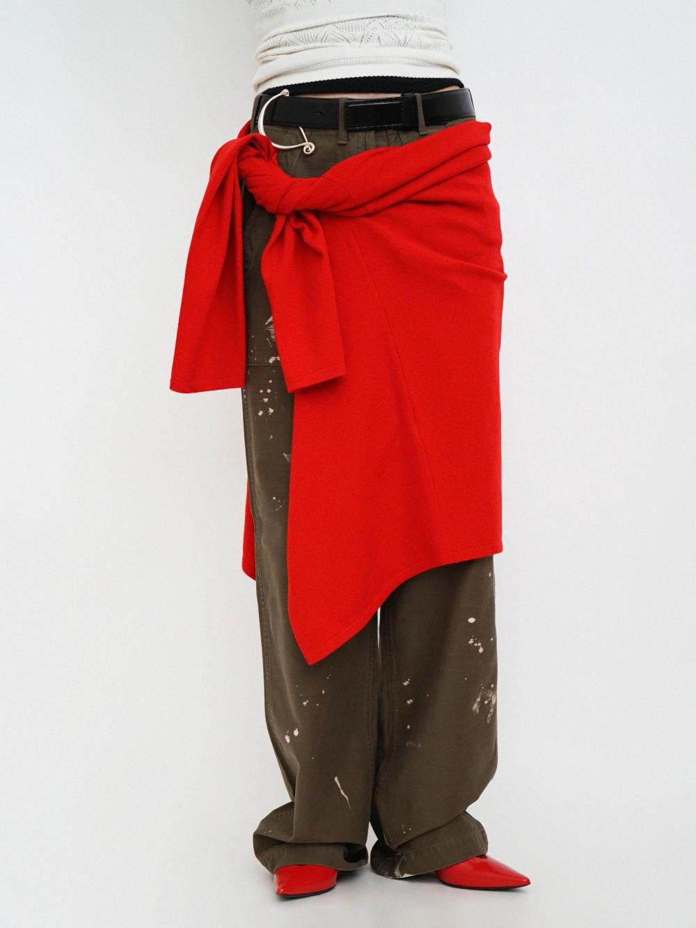 チューブ型のデザインを活かしてウエストベルトのようなスタイリングや、バスト部分に着用したスタイリング、様々な見え方でお楽しみいただけるアイテム。